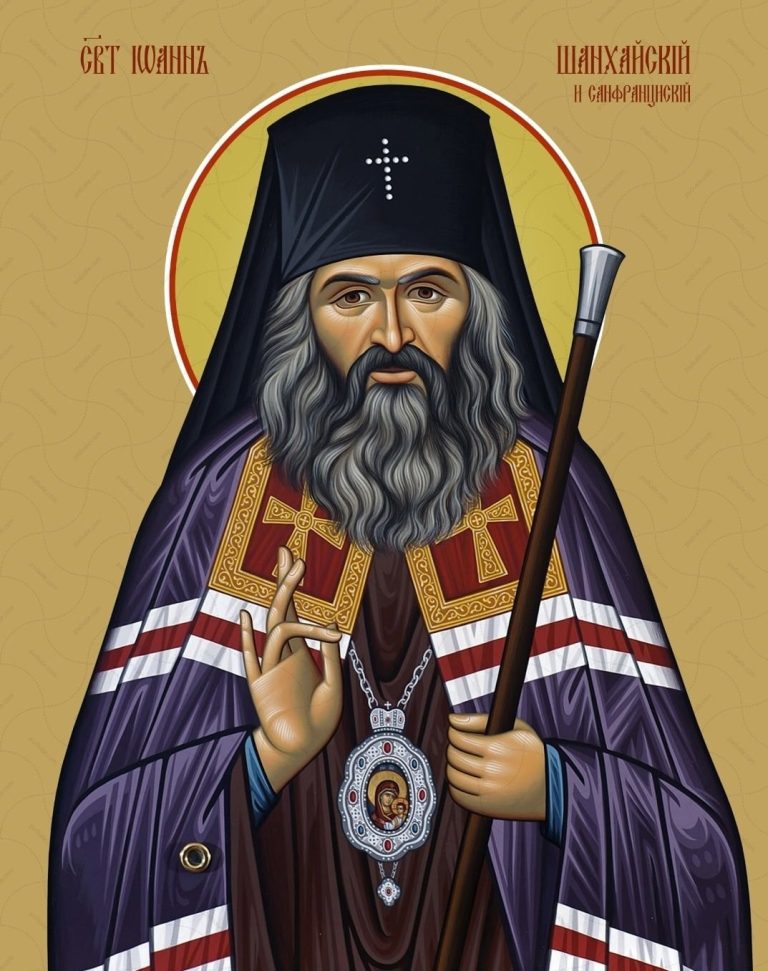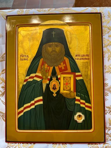 «О святителю отче наш Иоанне, пастырю добрый и тайновидче душ человеческих! Ныне у Престола Божия за нас молишися, якоже и сам посмертне изрекл еси: «Аще и умрох, но жив есмь». Умоли всещедраго Бога прощение нам во гресех даровати, да бодренно воспрянем, и Богу возопием о даровании нам духа смирения, страха Божия и благочестия во всяческих путех жизни нашея, яко милостивый сиропитатель и искусный наставник на земли быв, ныне буди нам путеводитель и в смутах церковных Христово вразумление. Услыши стенание смятенных юношей нашего лихолетия, обуреваемых беснованием вселукавым, и призри на уныние изнемогающих пастырей от утеснения тлетворнаго духа мира сего и томящихся в нерадении праздном и ускори на молитву, слезно вопием ти, о теплый молитвенниче; посети нас сирых, по всему лицу вселенныя разсеянных и во отечествии сущих, во тьме страстей блуждающих, но слабою любовию ко свету Христову влекущихся и ждущих твоего отеческаго наставления, да благочестию навыкнем и наследницы Царствия Небеснаго явимся, идеже ты пребываеши со всеми святыми, славяще Господа нашего Иисуса Христа, Емуже честь и держава, ныне и присно и во веки веков. Аминь.»